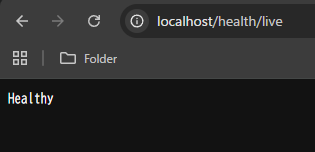 正常に起動すると、http://localhost/health/live にアクセスした時にこのような表示になります。 ZenServerのようなダッシュボードはなく、あまりにもシンプル過ぎる表示ですね…。